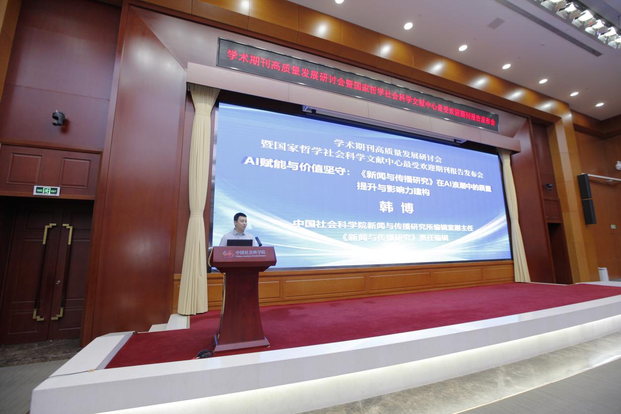 會議為“最受歡迎期刊”代表頒發(fā)了證書,并發(fā)布了《在學(xué)術(shù)期刊中合理應(yīng)用人工智能的倡議書》。中國社會科學(xué)院新聞與傳播研究所紀(jì)委書記、副所長劉利出席開幕式并領(lǐng)取了“最受歡迎期刊”證書。編輯室副主任韓博以《AI賦能與價值堅守:〈新聞與傳播研究〉在AI浪潮中的質(zhì)量提升與影響力建構(gòu)》為題做主題報告。