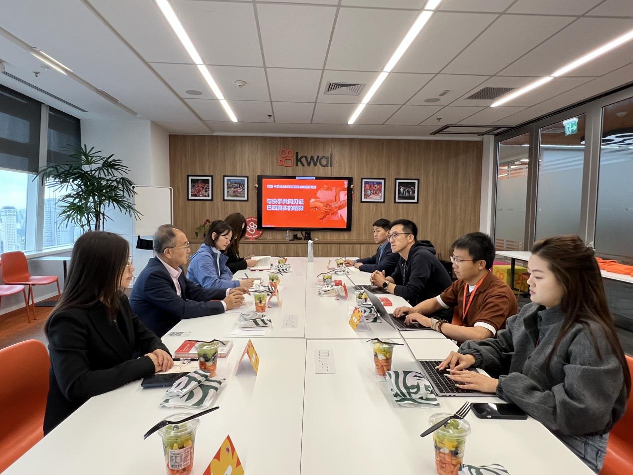 9日下午,調(diào)研組開(kāi)啟第二站行程,前往快手國(guó)際版Kwai平臺(tái)調(diào)研交流??焓指笨偛?、快手國(guó)際商業(yè)化負(fù)責(zé)人杜錚引領(lǐng)訪問(wèn)團(tuán)參觀了快手巴西工區(qū),并在隨后的座談會(huì)上,圍繞快手海外業(yè)務(wù)(巴西市場(chǎng))情況展開(kāi)分享。杜錚著重介紹了快手在巴西的“本地化生根”發(fā)展策略,強(qiáng)調(diào)快手通過(guò)精準(zhǔn)把握用戶需求、深度融入本土文化,在美資平臺(tái)主導(dǎo)的市場(chǎng)中開(kāi)辟出差異化發(fā)展道路,展現(xiàn)出中國(guó)互聯(lián)網(wǎng)企業(yè)在海外市場(chǎng)的創(chuàng)新活力與獨(dú)特競(jìng)爭(zhēng)力。