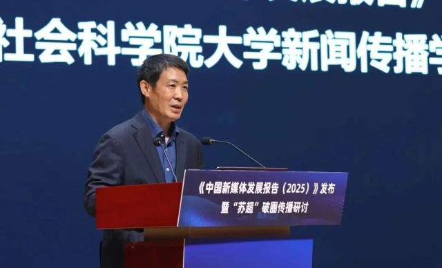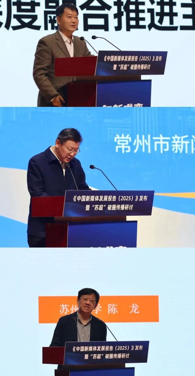 2025年12月2日,《中國(guó)新媒體發(fā)展報(bào)告(2025)》發(fā)布暨“蘇超”破圈傳播研討會(huì)在江蘇常州舉行。在會(huì)議開(kāi)幕式上,常州市委常委、市委宣傳部部長(zhǎng)陳志良,鳳凰出版?zhèn)髅郊瘓F(tuán)副總經(jīng)理、現(xiàn)代快報(bào)社社長(zhǎng)屠法,中國(guó)社會(huì)科學(xué)院新聞與傳播研究所副所長(zhǎng)劉利,江蘇省委網(wǎng)信辦副主任尤健等發(fā)表致辭。