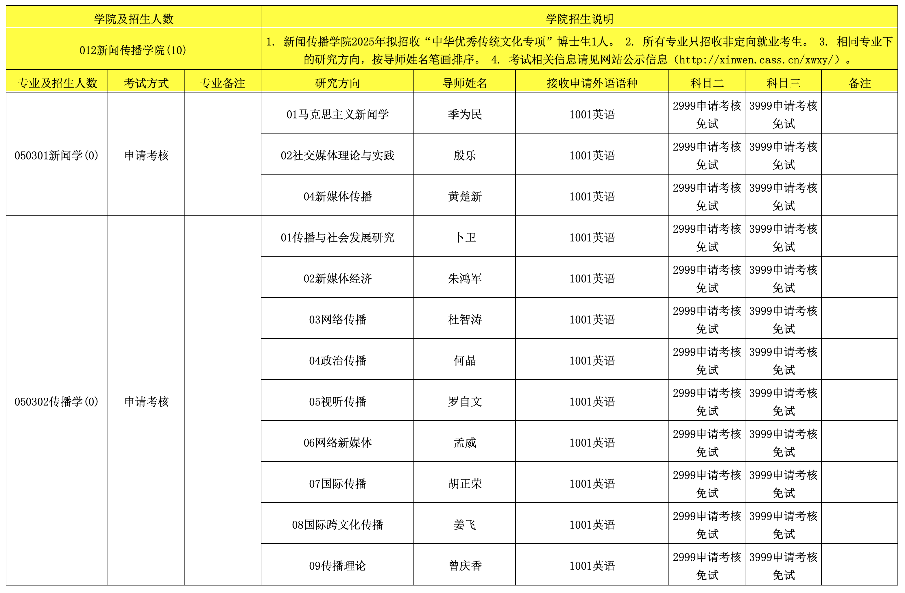 新聞傳播學院2025年博士研究生招生專業(yè)目錄